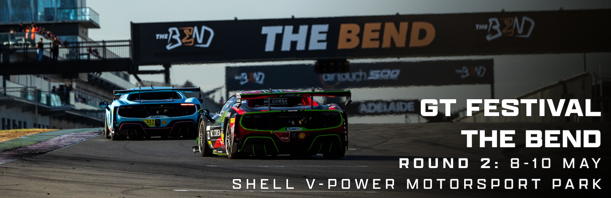 ROUND 2 GT FESTIVAL THE BEND SHELL V-POWER MOTORSPORT PARK, SA 8-10 MAY, 2026 TICKETS (Coming Soon) OFFICIALS (Coming Soon) SCHEDULE (Coming Soon) WATCH PREVIOUS: Phillip IslandNEXT: Queensland